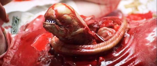 La ya muy comentada ( pero impresionante) escena de la aparicion del alien a traves del estomago de John Hurt